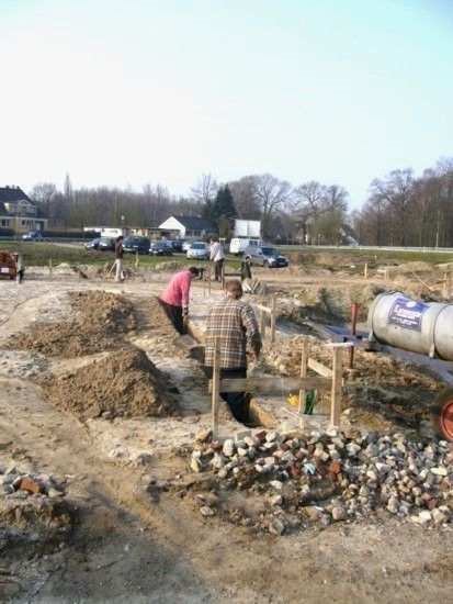 die Fundamente werden augehoben  ... ... und gegossen die Betonsohle entsteht